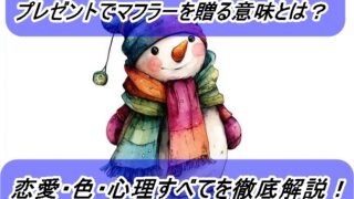 番外編 プレゼントでマフラーを贈る意味とは?恋愛・色・心理すべてを徹底解説! 「プレゼント マフラー 意味」を知りたい方へ。マフラーをプレゼントする行為には、恋愛的なサインや深い心理が隠れています。男性・女性別の想いや、色・ブランドによる違いまで徹底解説。大切な人に贈る前に、「プレゼント マフラー 意味」をしっかり理解しましょう。 2025.10.15 番外編
