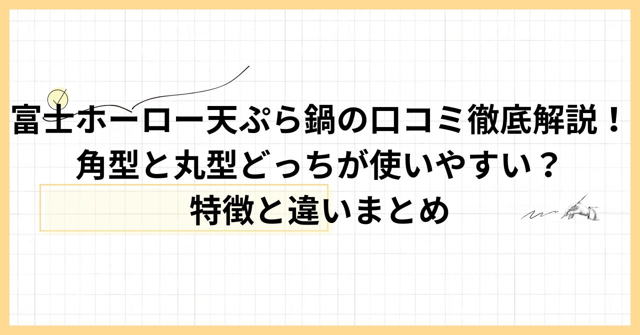 この記事では、富士ホーロー天ぷら鍋の口コミやメリット・デメリット、角型と丸型の違い、選び方のポイントまで整理しています。気になる点をこの記事でチェックしてみてくださいね。